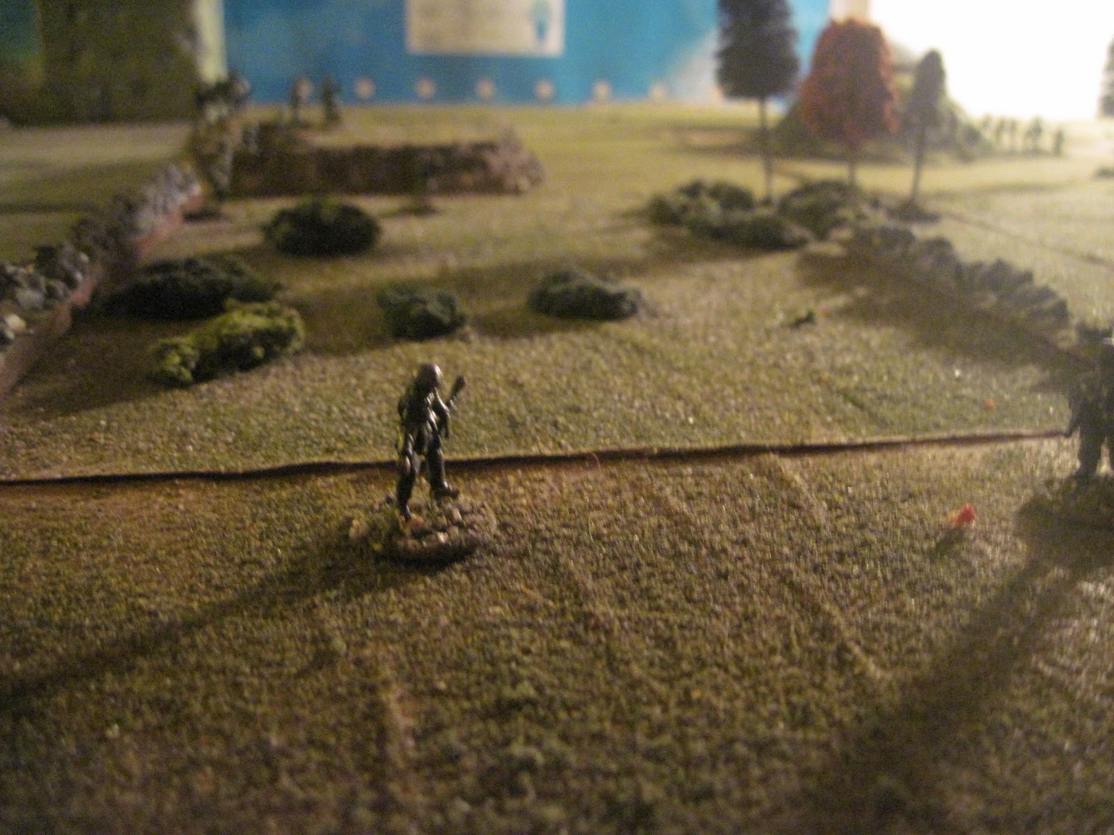 He guns down one of my Norwegian riflemen. The first Norwegian casualty is the soldier I christened "Pte. Rosenberg" for the West German Army. |
